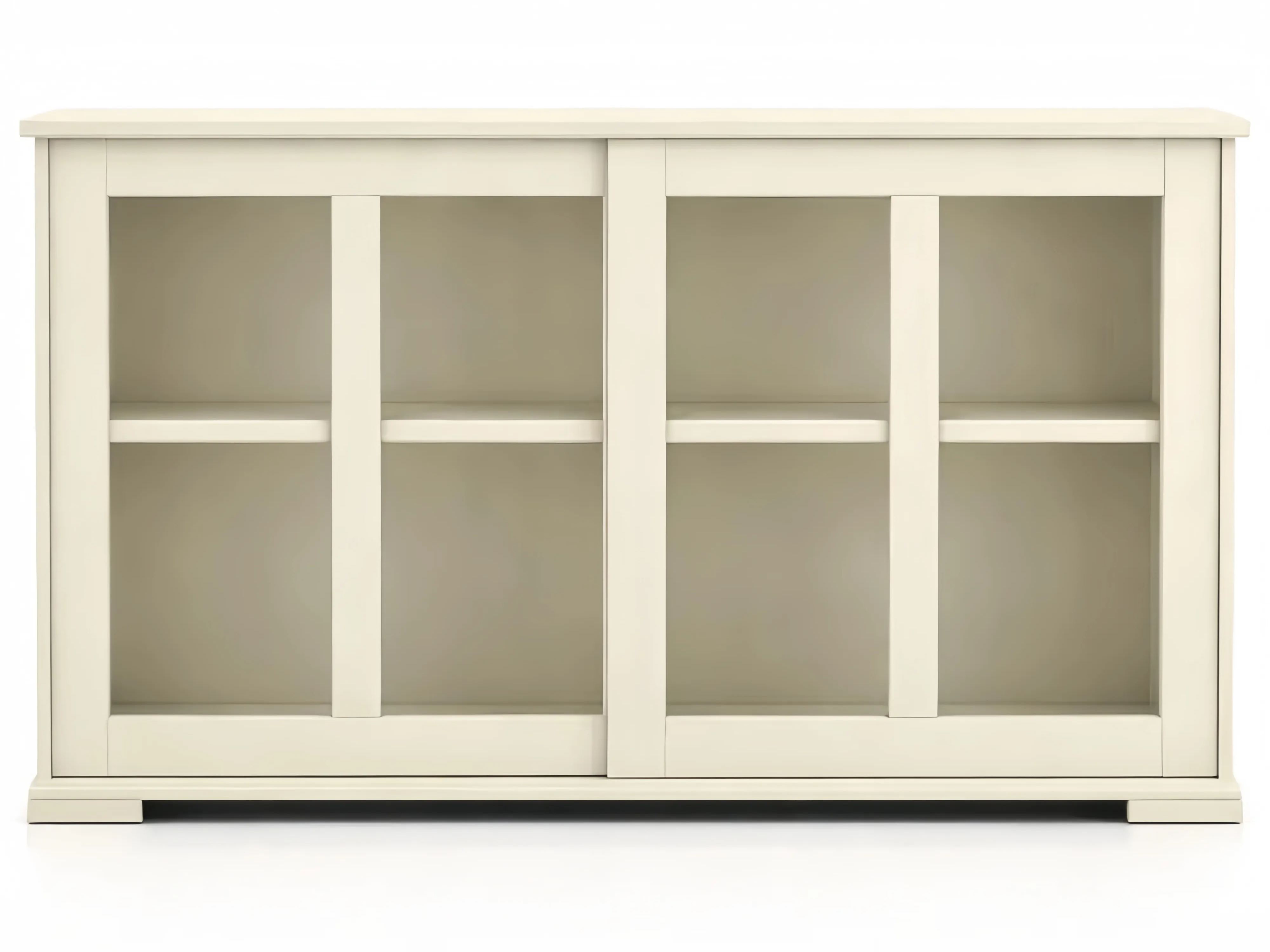 Credenza mobile multiuso con ante scorrevoli in legno e vetro